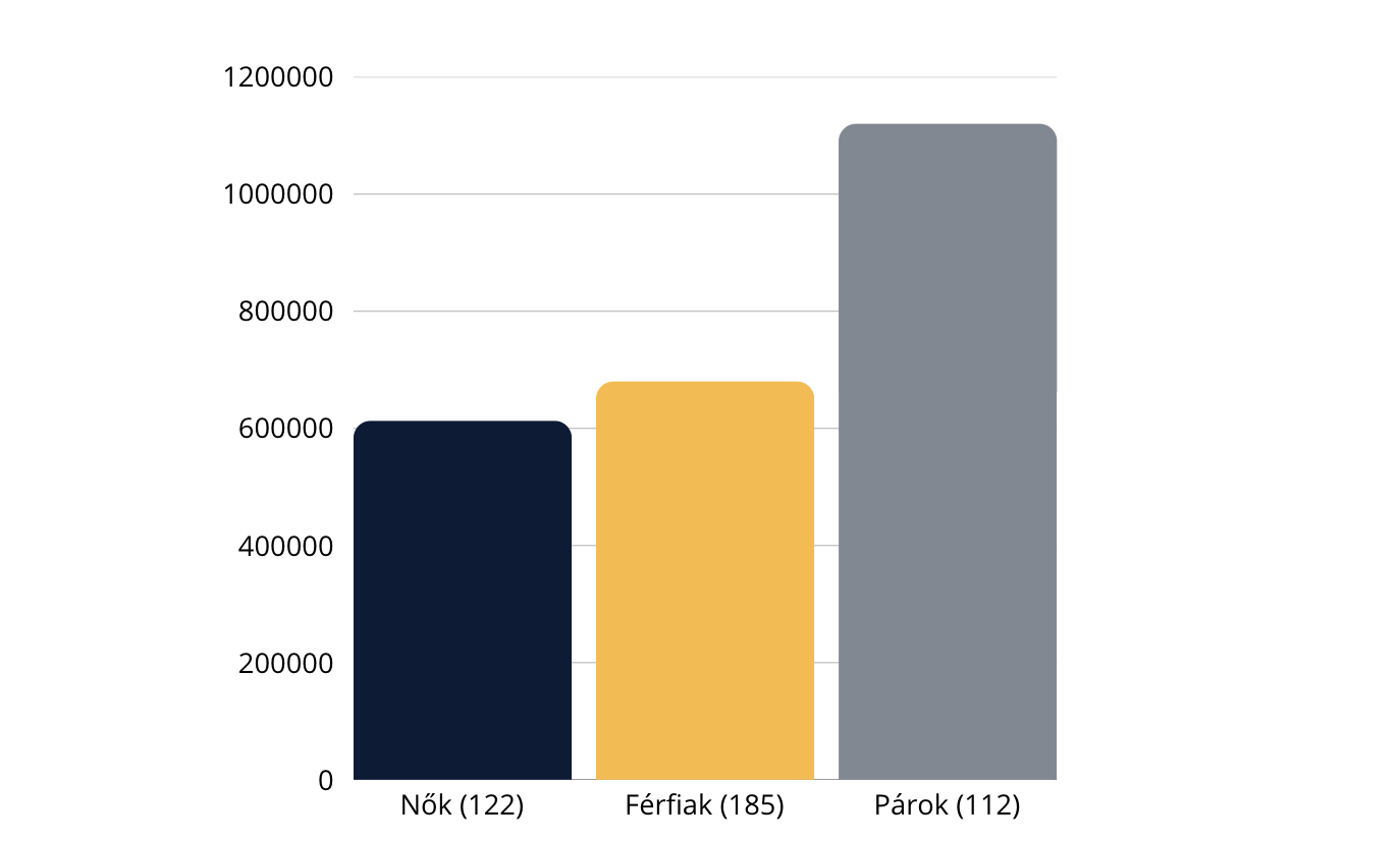 Naprakészen vezetett statisztikáink alapján a női bérlőink havi átlagkeresete nettó 613 000 Ft, míg a férfi bérlőink esetében ez az összeg nettó 680 000 Ft. Ez jelentősen magasabb, mint a KSH által közzétett átlagbér mértéke, hiszen a ránk bízott ingatlanokat kizárólag magasan képzett, biztos fizetőképességű bérlőknek adjuk ki.